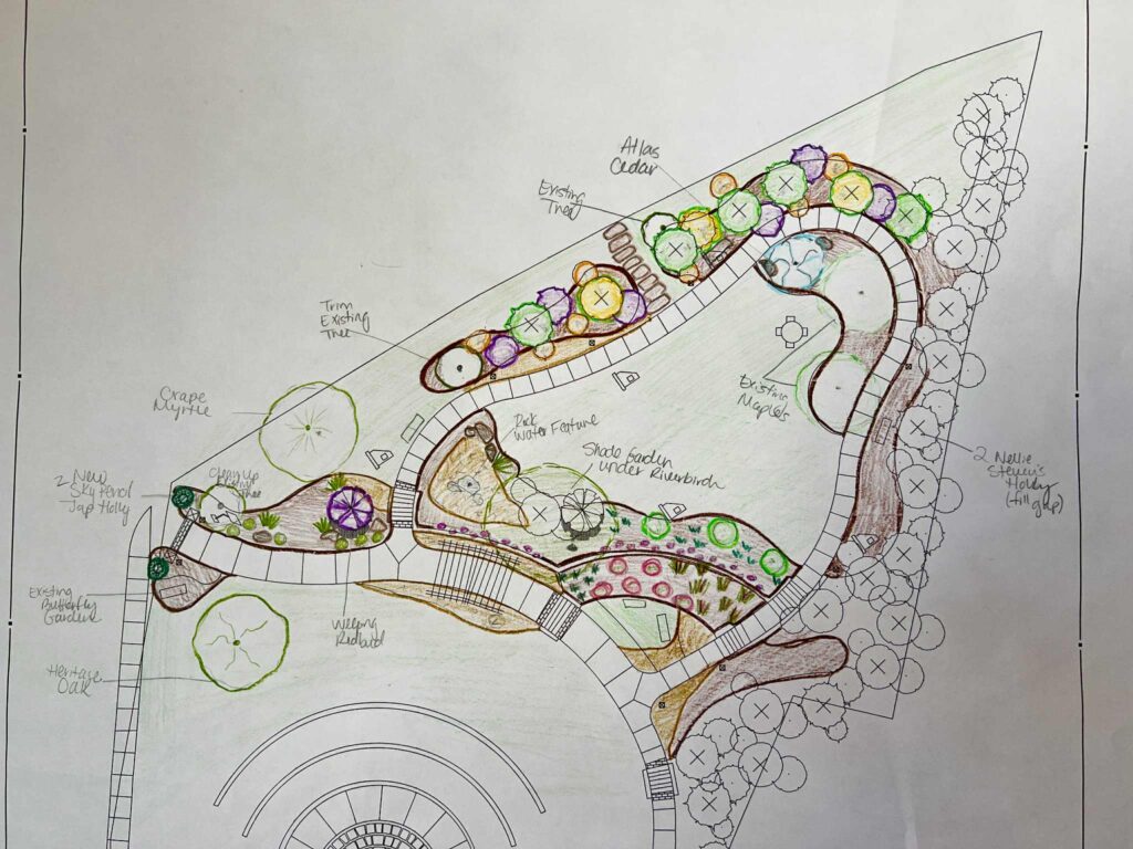 Landscaping Plan for the art installation by Settlemyre Nursery.