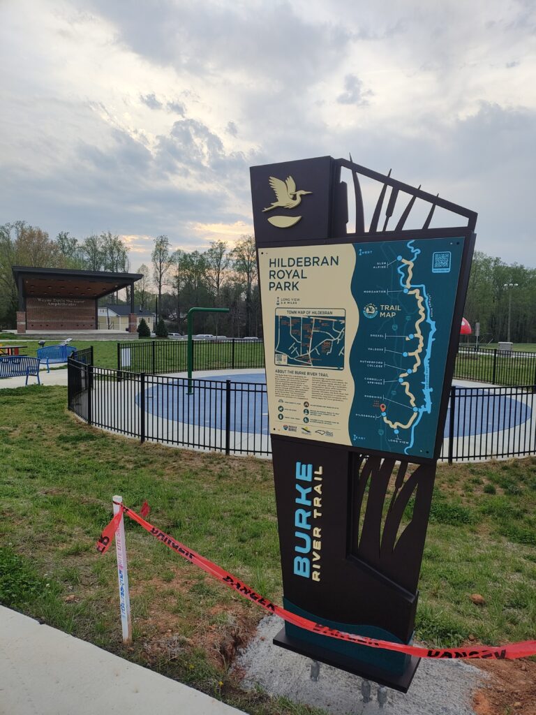 - Hildebran Royal Park — Eastern Terminus of Burke River Trail; parking, restrooms, splash pad, musical play features, stage
